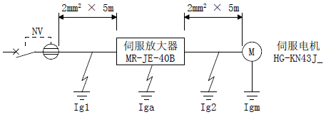 Ig2:從三菱伺服放大器輸出端子至伺服電機為止的電路的漏電流(表a)