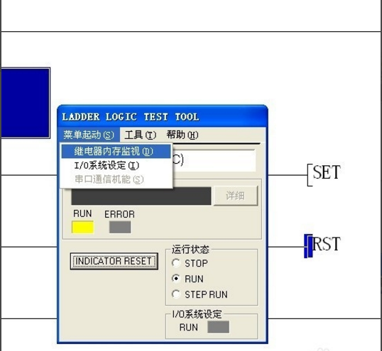 六、點擊測試對話框的“菜單啟動”—繼電器內存監視。